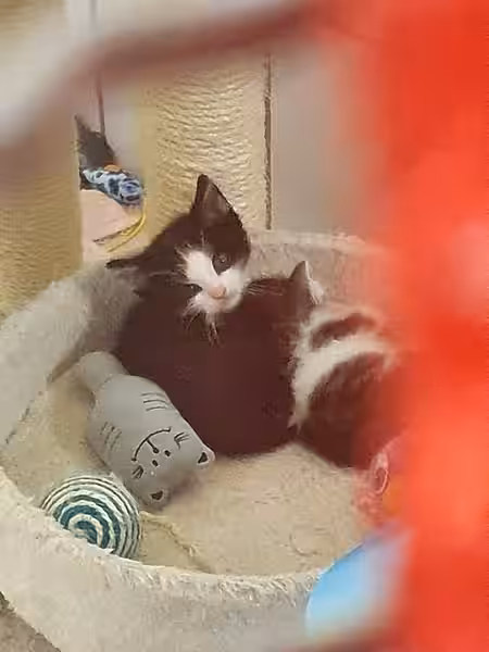 Denn bis auf eine Straßenkatze sind sie alle ziemlich scheu, sodass eine Vermittlung bei diesen Tieren ausgeschlossen ist. Die zutrauliche Mutter hingegen, eine junge schwarz-weiße Katze, genießt ihre Streicheleinheiten sehr und liebt es, mit den Tierpflegern zu spielen. Für sie findet sich bestimmt ein schönes Zuhause.