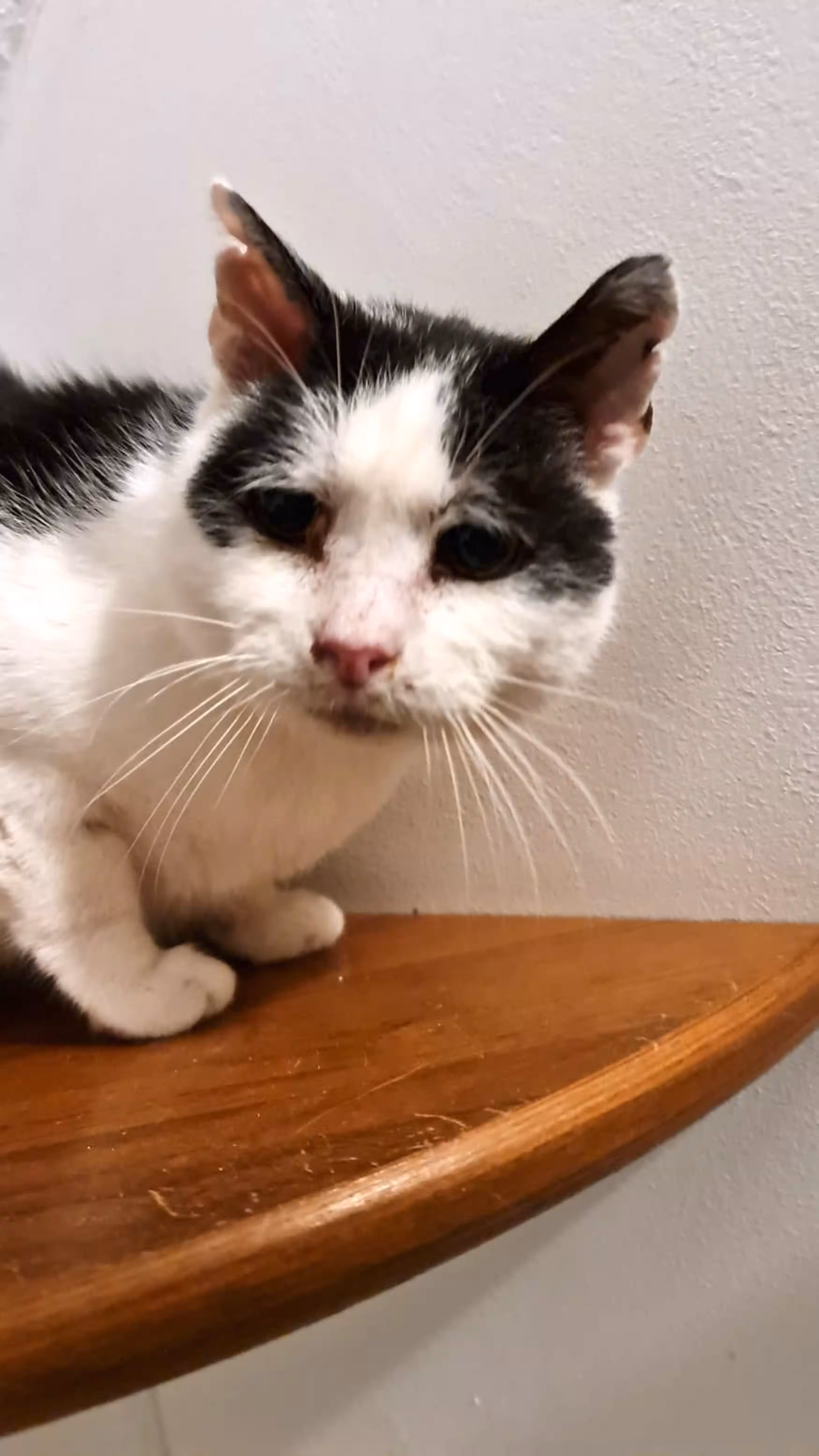 Und so kam es wie es kommen musste: Er wurde tot in der Wohnung gefunden, und die Erben warfen als erstes die Katzen hinaus und machten das Fenster zu. Somit saßen die Tiere (zwei weit über 13, eine ca. 5 Jahre alt) frierend im Garten. Wir hörten davon, nahmen mit den Erben Kontakt auf und besprachen, dass die Tiere in der Wohnung festgesetzt werden sollen und wir zeitnah eine Lösung finden. Als wir am nächsten Tag auftauchten, um Futter zu bringen und nach dem Rechten zu schauen, war der nächste Erbe aufgetaucht. Dieser hatte nichts anderes zu tun als einen Tag nach dem Tod des Mannes alles aus der Wohnung zu werfen, inklusive der Katzen. Also gab es wieder lange Gespräche, man einigte sich darauf, die Tiere noch einmal in die Wohnung zu locken, damit wir sie am nächsten Tag fangen konnten. Das klappte wieder nicht absprachegemäß, weil ein Tier beim Räumen der Wohnung die Flucht ergriff und bis jetzt nicht wieder aufgetaucht ist. Die zwei anderen waren die alten Kater, die insgesamt einen ramponierten Eindruck machen. Zum Glück fanden wir eine tolle Pflegestelle in der sie sich jetzt von den Strapazen erholen können und wir in Ruhe ein geeignetes Zuhause suchen können. Für das dritte Tier sind die Fallen gestellt, und wir hoffen, dass wir es zeitnah fangen können.